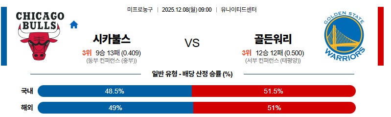 12월08일 시카고:골든스테이트 NBA 분석 및 예측