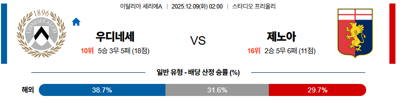 12월09일 우디네세:제노아 세리에A 분석 및 예측