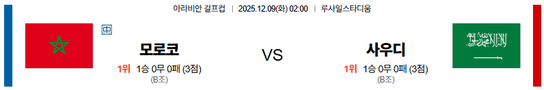 12월09일 모로코:사우디아라비아 걸프컵 분석 및 예측