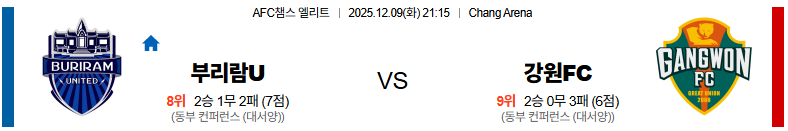 12월09일 부리람:강원 AFC챔피언스리그 분석 및 예측