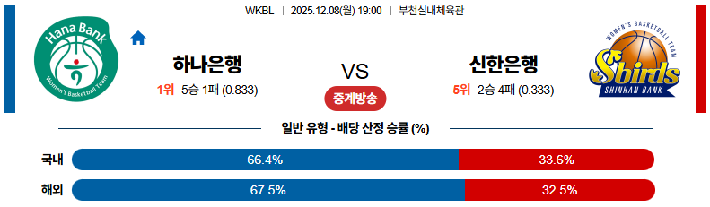 12월08일 하나은행:신한은행 WKBL 분석 및 예측