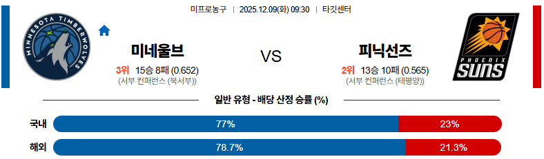 12월09일 미네소타:피닉스 NBA 분석 및 예측