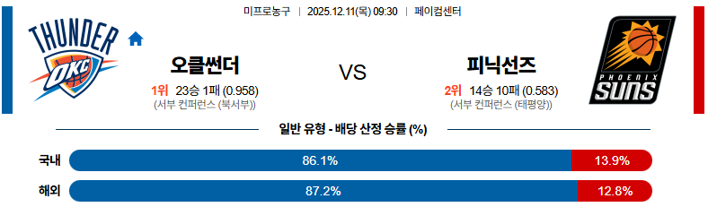 12월11일 오클라호마시티:피닉스 NBA 분석 및 예측