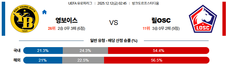 12월12일 영보이즈:릴OSC UEFA유로파리그 분석 및 예측