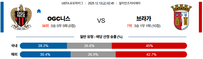 12월12일 OGC니스:브라가 UEFA유로파리그 분석 및 예측