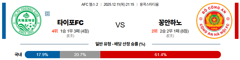 12월11일 타이포FC:공안 AFC챔피언스리그2 분석 및 예측