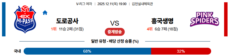 12월11일 한국도로공사:흥국생명 V리그(여) 분석 및 예측