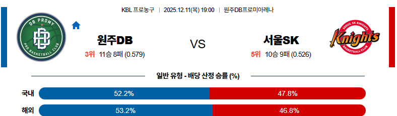 12월11일 원주DB:서울SK KBL 분석 및 예측