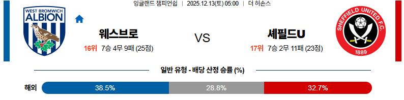 12월13일 웨스트브로미치:셰필드유나이티드 잉글랜드챔피언쉽 분석 및 예측