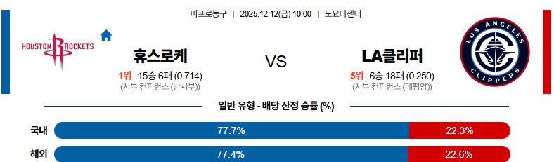 12월12일 휴스턴:LA클리퍼스 NBA 분석 및 예측