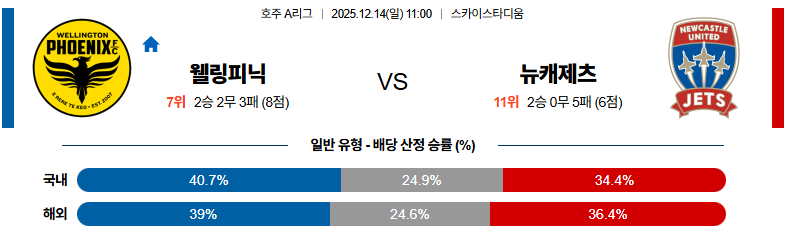 12월14일 웰링턴피닉스:뉴캐슬제츠 호주A리그 분석 및 예측