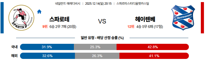 12월14일 스파르타:헤렌벤 에레디비지 분석 및 예측
