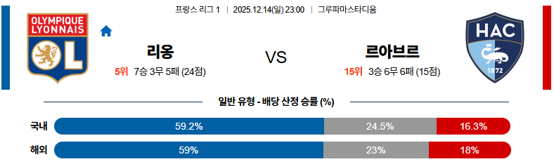 12월14일 올랭피크리옹:르아브르 리그앙 분석 및 예측