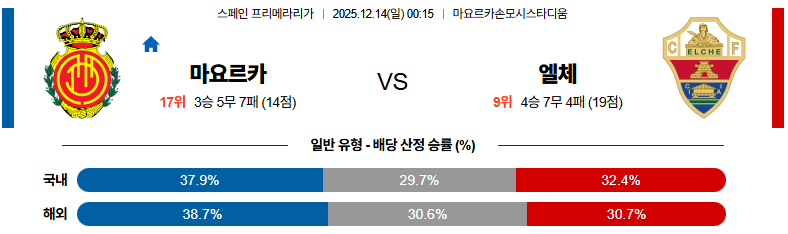 12월14일 엘체:마요르카 라리가 분석 및 예측