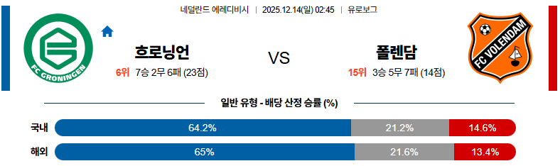 12월14일 흐로닝언:폴렌담 에레디비지 분석 및 예측