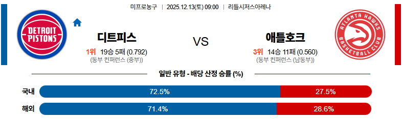 12월13일 디트로이트:애틀랜타 NBA 분석 및 예측