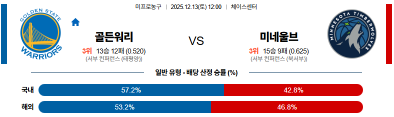 12월13일 골든스테이트:미네소타 NBA 분석 및 예측