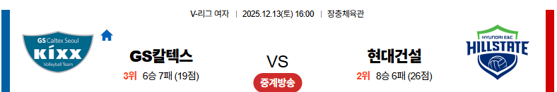 12월13일 GS칼텍스:현대건설 V리그(여) 분석 및 예측