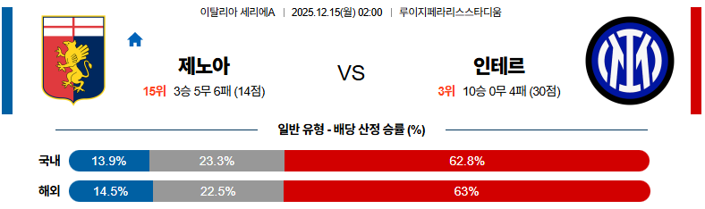 12월15일 제노아:인터밀란 세리에A 분석 및 예측