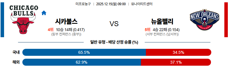 12월15일 시카고:뉴올리언즈 NBA 분석 및 예측