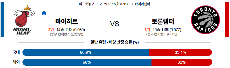 12월16일 마이애미:토론토 NBA 분석 및 예측