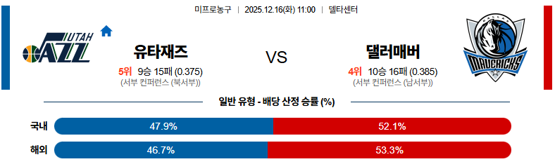 12월16일 유타:댈러스 NBA 분석 및 예측