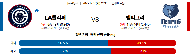12월16일 LA클리퍼스:멤피스 NBA 분석 및 예측