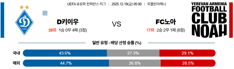 12월19일 디나모키예프:노아 UEFA유로파컨퍼런스 분석 및 예측