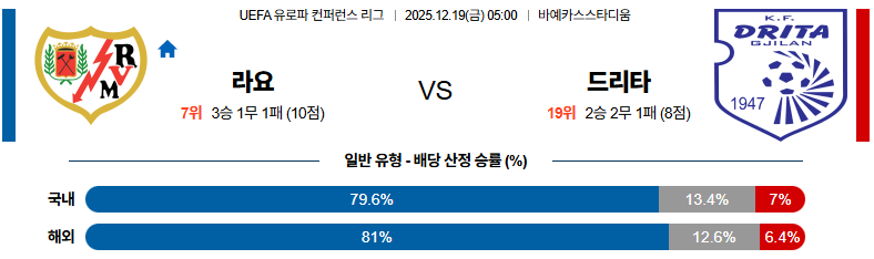 12월19일 라요:드리타 UEFA유로파컨퍼런스 분석 및 예측