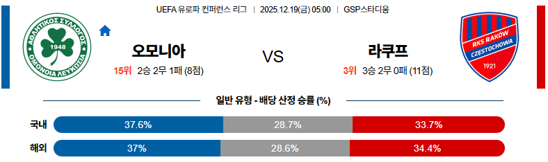 12월19일 오모니아:라코브 UEFA유로파컨퍼런스 분석 및 예측
