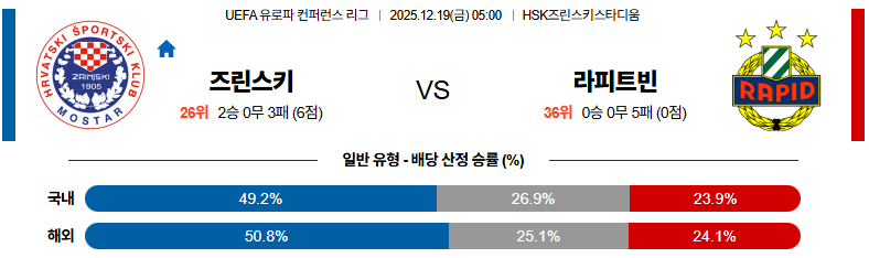 12월19일 즈린스키:라피드빈 UEFA유로파컨퍼런스 분석 및 예측