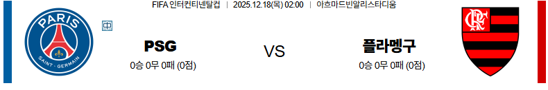 12월18일 파리생제르망:플라멩고 FIFA인터컨티넨탈컵 분석 및 예측