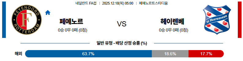 12월18일 페예노르트:헤이렌베인 네덜란드FA컵 분석 및 예측