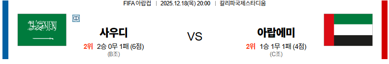12월18일 사우디아라비아:아랍에미리트 FIFA아랍컵 분석 및 예측