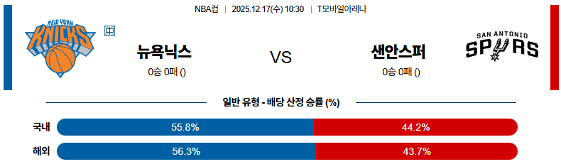 12월17일 뉴욕:샌안토니오 NBA 분석 및 예측