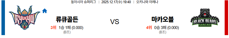 12월17일 류큐골든킹즈:마카오블랙베어스 동아시안컵 분석 및 예측