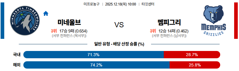 12월18일 미네소타:멤피스 NBA 분석 및 예측