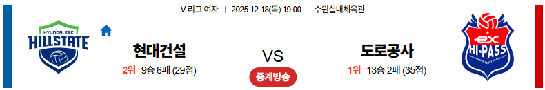 12월18일 현대건설:한국도로공사 V리그(여) 분석 및 예측