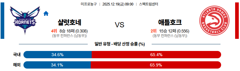 12월19일 샬럿:애틀랜타 NBA 분석 및 예측
