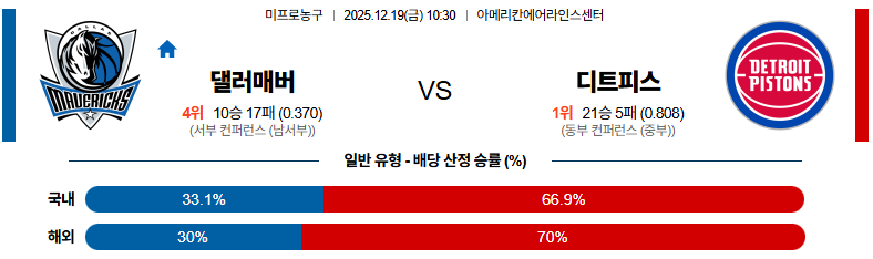 12월19일 댈러스:디트로이트 NBA 분석 및 예측