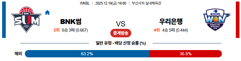 12월19일 BNK썸:우리은행 WKBL 분석 및 예측