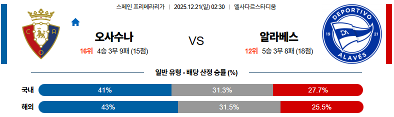 12월21일 오사수나:알라베스 라리가 분석 및 예측