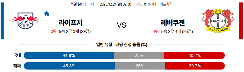 12월21일 라이프치히:레버쿠젠 분데스리가 분석 및 예측