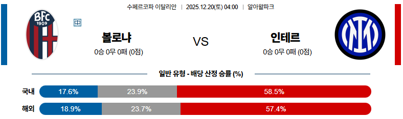 12월20일 볼로냐:인터밀란 코파이탈리아 분석 및 예측