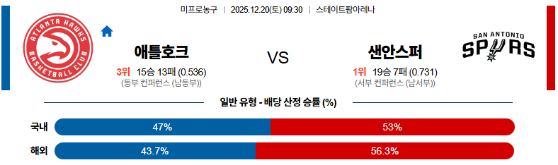 12월20일 애틀랜타:샌안토니오 NBA 분석 및 예측
