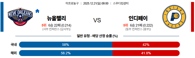 12월21일 뉴올리언스:인디애나 NBA 분석 및 예측