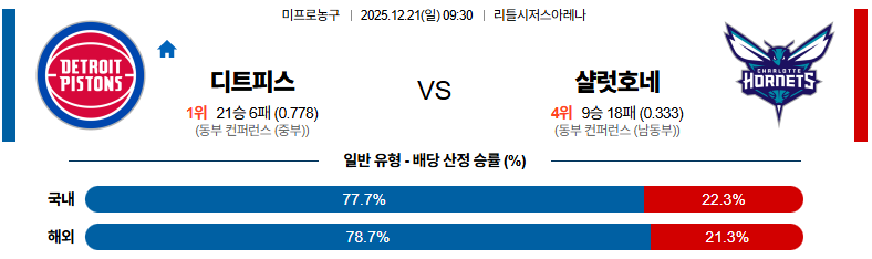 12월21일 디트로이트:샬럿 NBA 분석 및 예측