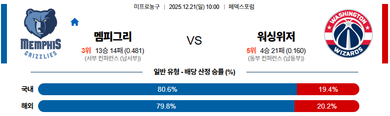 12월21일 멤피스:워싱턴 NBA 분석 및 예측