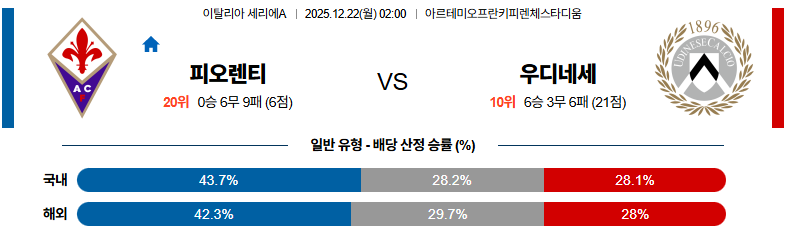 12월22일 피오렌티나:우디네세 세리에A 분석 및 예측