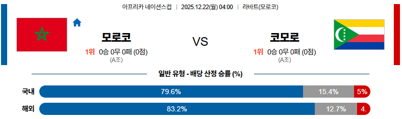 12월22일 모로코:코모로스 네이션스컵 분석 및 예측